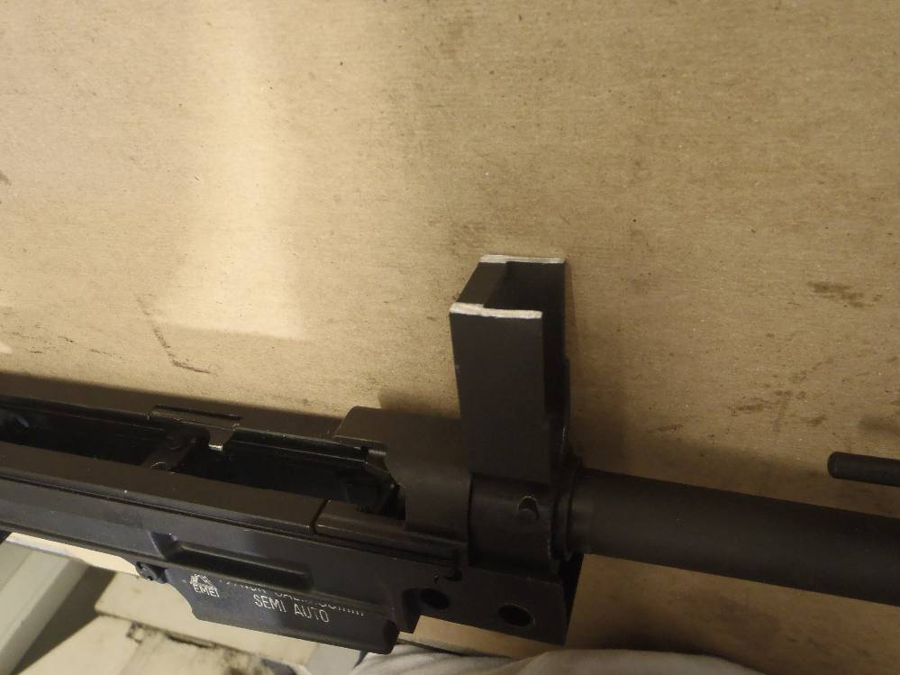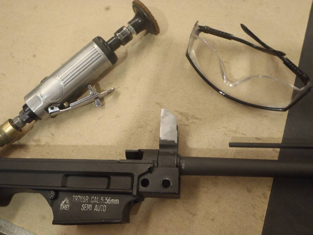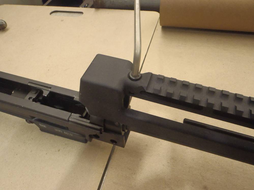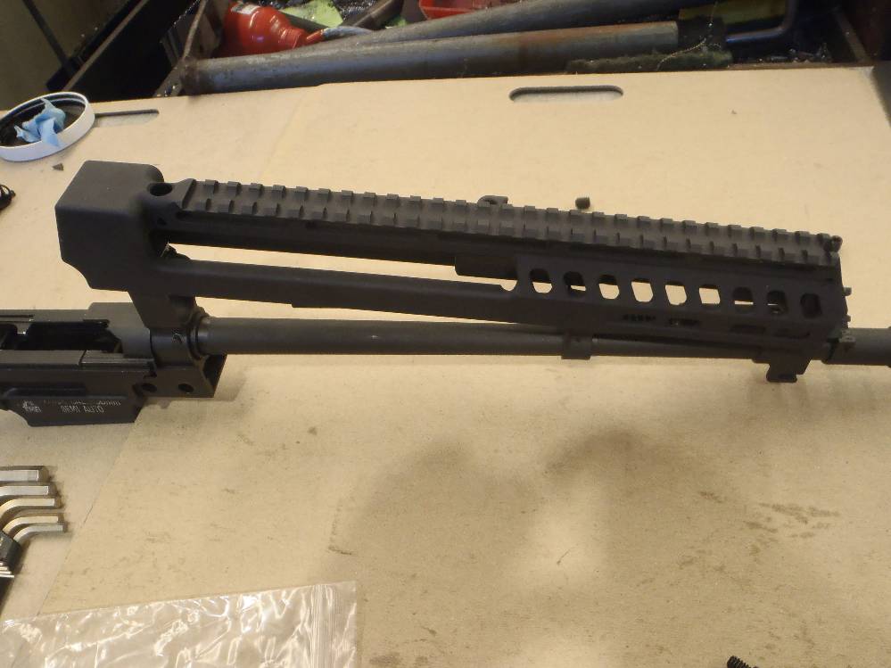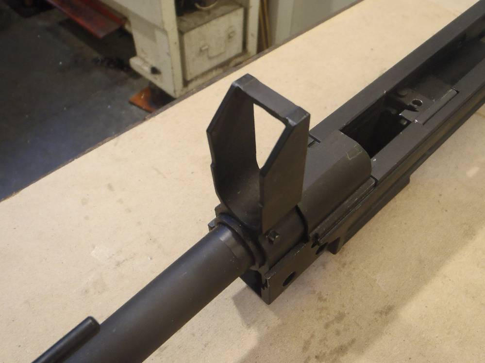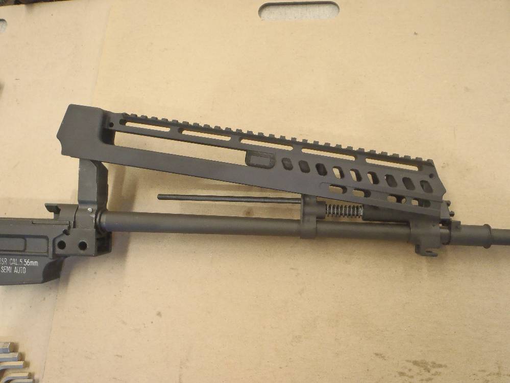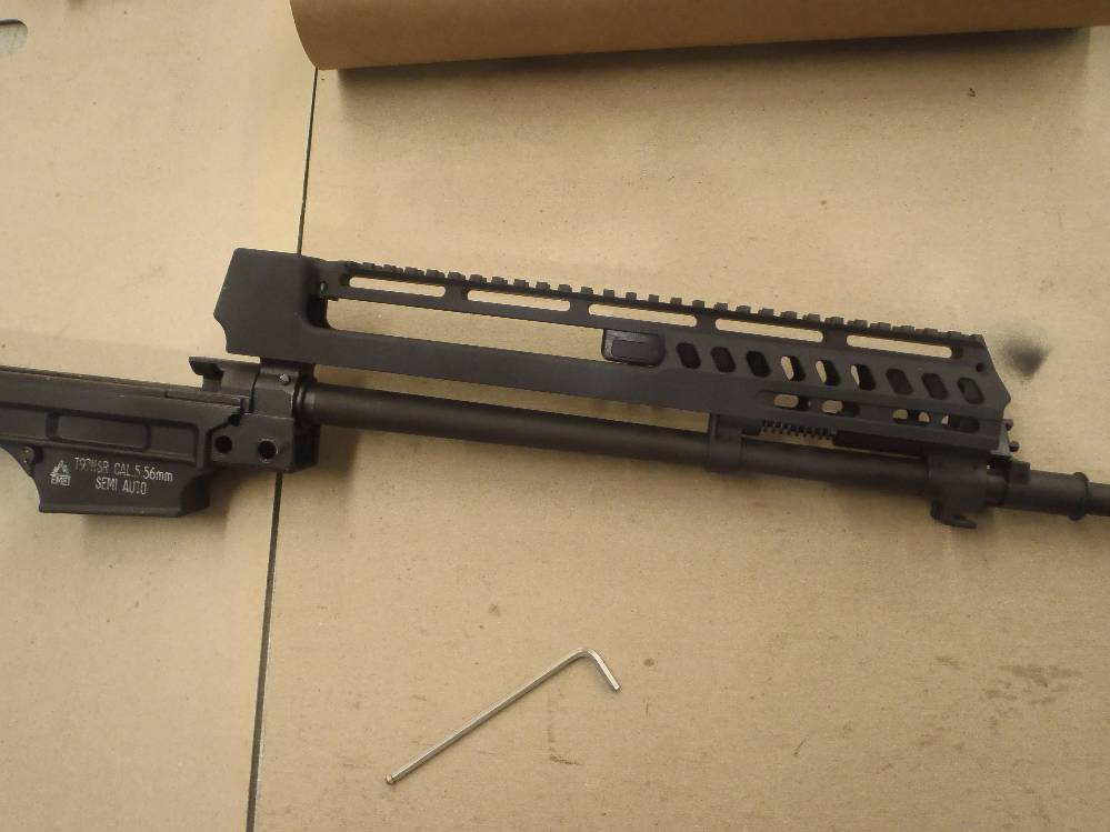 ![]() This pictorial of the T97.ca FTU (Flat Top Upper) is not meant to replace the original installation instructions but rather, act as a visualization aid only. For a complete write up, please download the original installation instructions from this link. Above: Unboxing the T97NSR and T97.ca Flat Top Upper. The FTU ships fully assembled. Above: Field stripping the T97NSR. Above: Marking the front sight post stanchion for alteration. Above: Marking the rear sight post stanchion for alteration. Above: Do not cut below the "steel cross braces" on the sight post towers. Above: The front sight post removed. Above: A clean cut. Above: The rear sight removed. Above: A clean cut. Above: Marking the angular cuts. Above: Deburring. Sand paper works just as well. Above: Deburred and cleaned nicely. Above: Deburred and cleaned nicely. Above: A file will also debur and smooth metal handily. Above: Preparing to drill out the original charging handle rivet. Above: Drilling out the original charging handle rivet. Above: A punch will help, a common nail will do. Above: Nothing we will miss. Above: Dabbing a little paint on exposed metal. Above: Dry paint. Above: The FTU's all steel rear sight post clamp. Above: The FTU's double locked front sight post clamp. Above: Sliding the FTU onto the front sight post at a 20-30 degree angle to the top flat. Above: Loose fitting the rear clamp. Above: if your FTU does not seat on the rear sight post stanchion, do not force it. Above: Side surface reductions of the rear sight stanchion for proper FTU fitment may be required. Above: This can be done with a block and metal sand paper. A power tool helps but is not required. Above: A quick touch up and we are done modifying the rifle. Above: Looks good. Note the charging handle in the forward position during installation. Above: Tightening up the set screw on the rear clamp. Tight space here. Above: Tightening up the rear clamp from above. Above: Tightening up the front clamp. Above and Below: Re-assembly begins. Above: The re-assembled rifle. Above: The T97.ca FTU (Flat Top Upper) installed. |