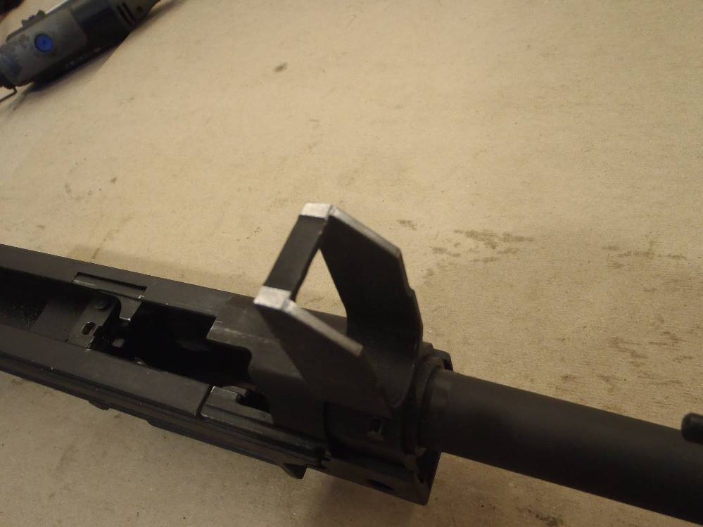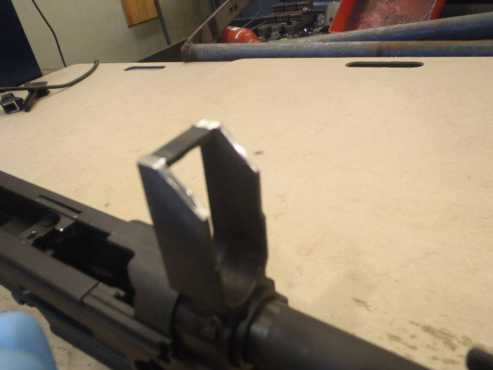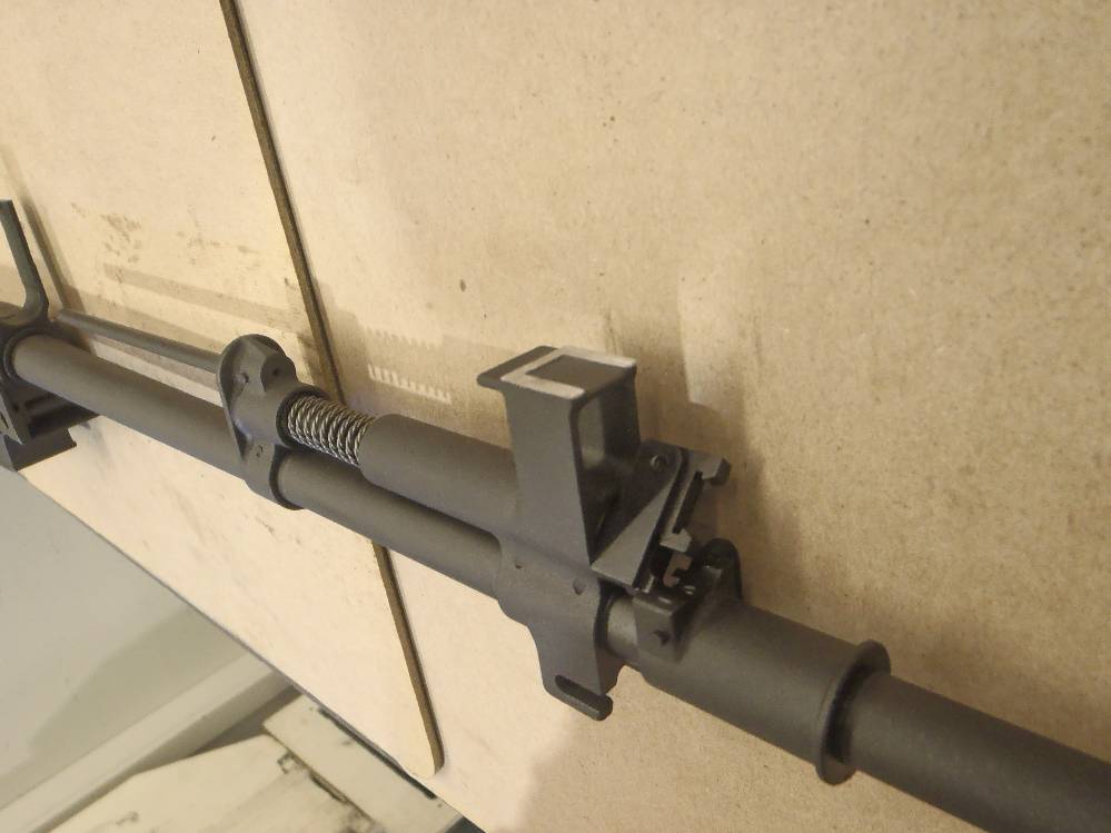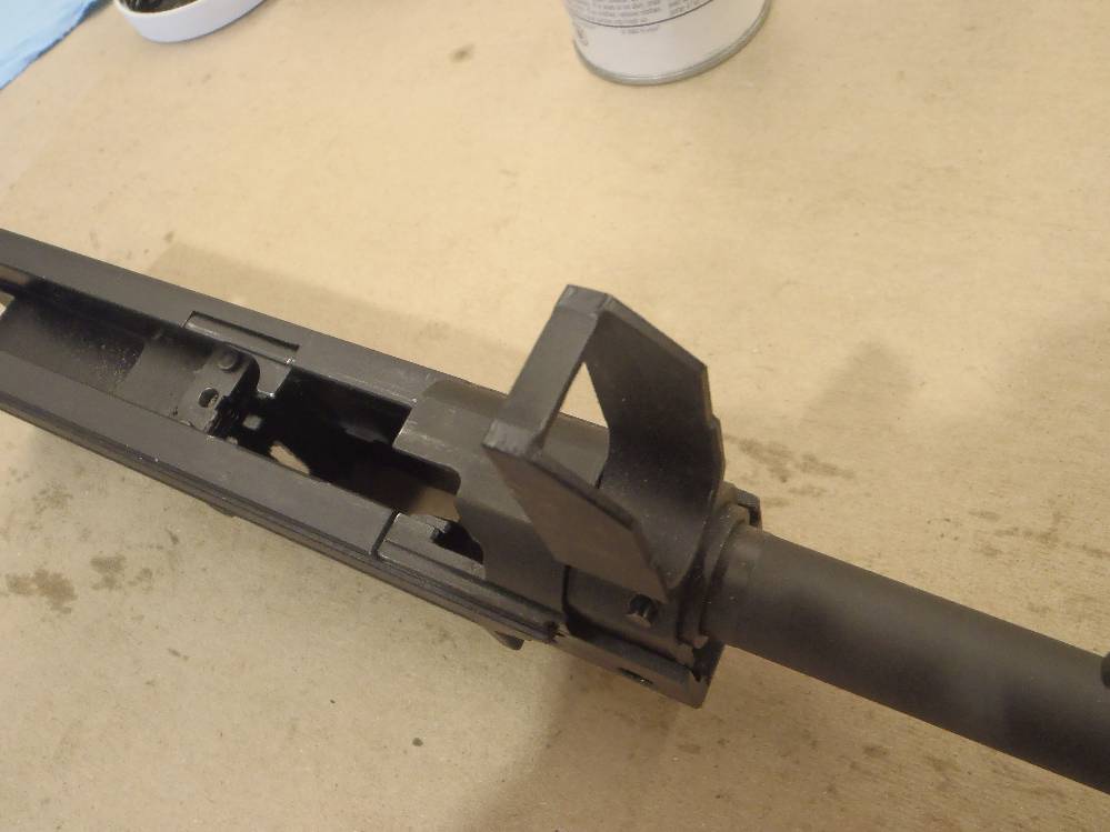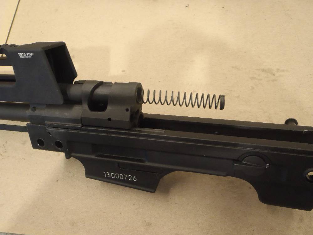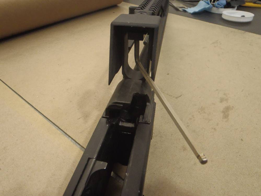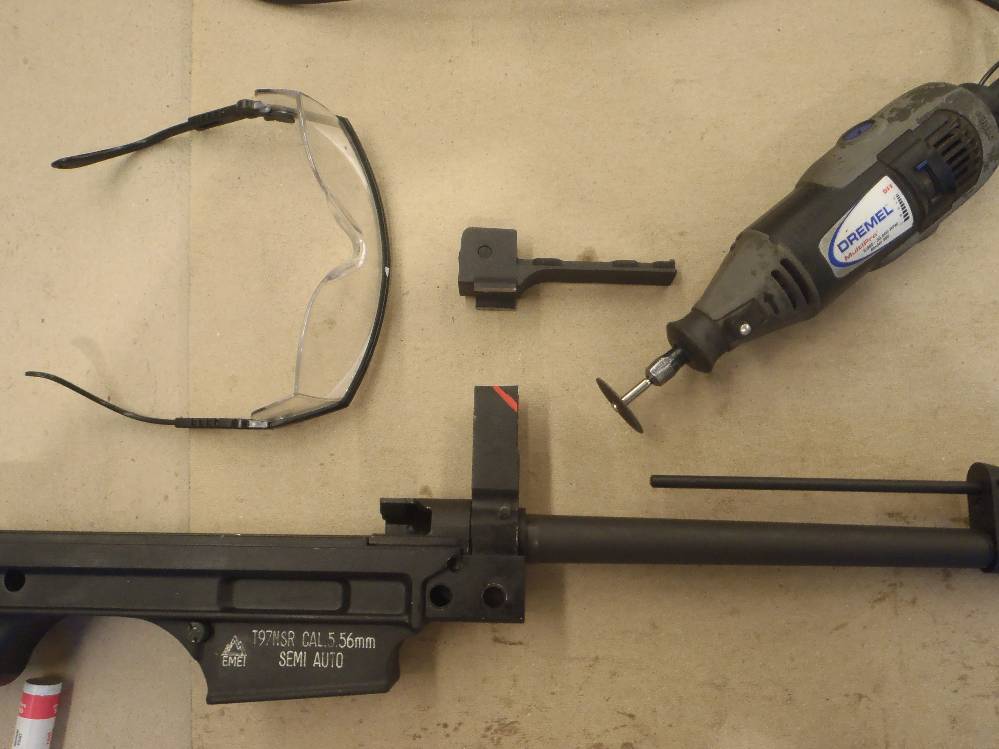 ![]() This pictorial of the T97.ca FTU (Flat Top Upper) is not meant to replace the original installation instructions but rather, act as a visualization aid only. For a complete write up, please download the original installation instructions from this link. Above: Unboxing the T97NSR and T97.ca Flat Top Upper. The FTU ships fully assembled. Above: Field stripping the T97NSR. Above: Marking the front sight post stanchion for alteration. Above: Marking the rear sight post stanchion for alteration. Above: Do not cut below the "steel cross braces" on the sight post towers. Above: The front sight post removed. Above: A clean cut. Above: The rear sight removed. Above: A clean cut. Above: Marking the angular cuts. Above: Deburring. Sand paper works just as well. Above: Deburred and cleaned nicely. Above: Deburred and cleaned nicely. Above: A file will also debur and smooth metal handily. Above: Preparing to drill out the original charging handle rivet. Above: Drilling out the original charging handle rivet. Above: A punch will help, a common nail will do. Above: Nothing we will miss. Above: Dabbing a little paint on exposed metal. Above: Dry paint. Above: The FTU's all steel rear sight post clamp. Above: The FTU's double locked front sight post clamp. Above: Sliding the FTU onto the front sight post at a 20-30 degree angle to the top flat. Above: Loose fitting the rear clamp. Above: if your FTU does not seat on the rear sight post stanchion, do not force it. Above: Side surface reductions of the rear sight stanchion for proper FTU fitment may be required. Above: This can be done with a block and metal sand paper. A power tool helps but is not required. Above: A quick touch up and we are done modifying the rifle. Above: Looks good. Note the charging handle in the forward position during installation. Above: Tightening up the set screw on the rear clamp. Tight space here. Above: Tightening up the rear clamp from above. Above: Tightening up the front clamp. Above and Below: Re-assembly begins. Above: The re-assembled rifle. Above: The T97.ca FTU (Flat Top Upper) installed. |
